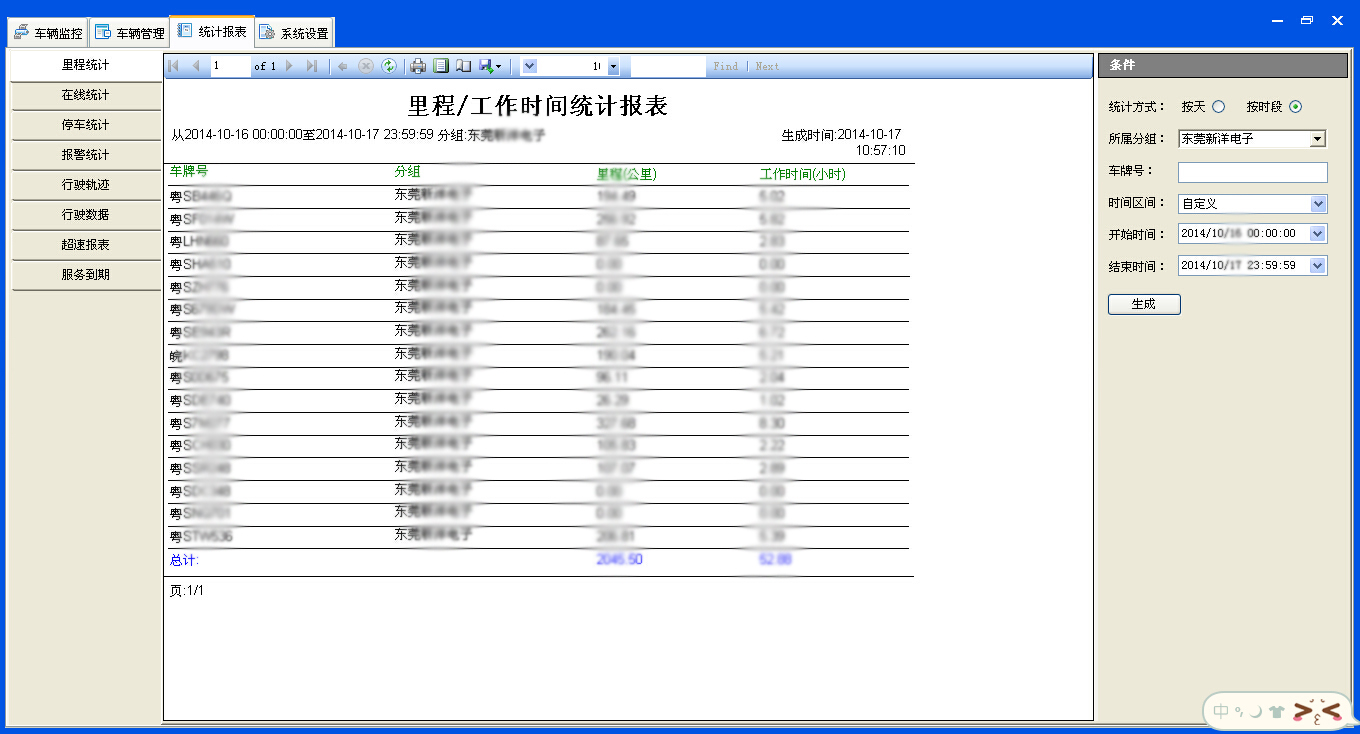 可以統(tǒng)計(jì)所有車輛或某些車輛在某一時間段內(nèi)行駛過的行駛里程,并可存表打印。給車輛管理部門或財(cái)務(wù)部門提供準(zhǔn)確的車輛行駛數(shù)據(jù)參考。