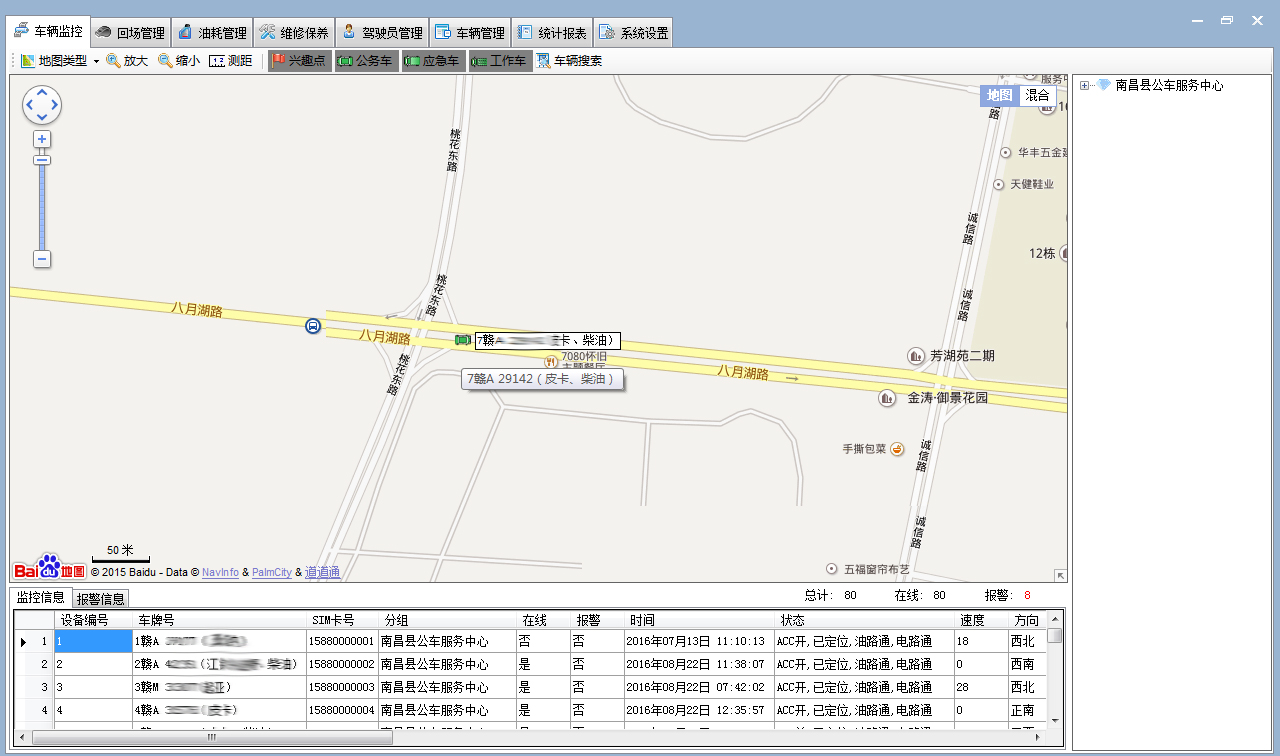 監(jiān)控地圖界面:一目了然,界面分功能區(qū),地圖區(qū)、信息去區(qū)車輛信息區(qū))