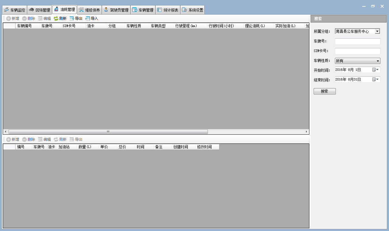 3.2 油耗管理:通過中石油或者中石化提供的報表錄入,可以管理車輛從買進到報廢全過程使用油耗值。也可以對實際油耗和理論油耗做對比,相差大就有可能是由于油卡被亂用的情況。