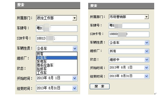 記錄每輛車的維修保養(yǎng)記錄,詳細(xì)列明維修原因和維修項(xiàng)目、維修費(fèi)用、維修狀態(tài)等信息。用戶可進(jìn)行條件選擇搜索相應(yīng)車輛的維修情況,為車輛維修管理進(jìn)行合理的成本管控提供數(shù)據(jù)支持。